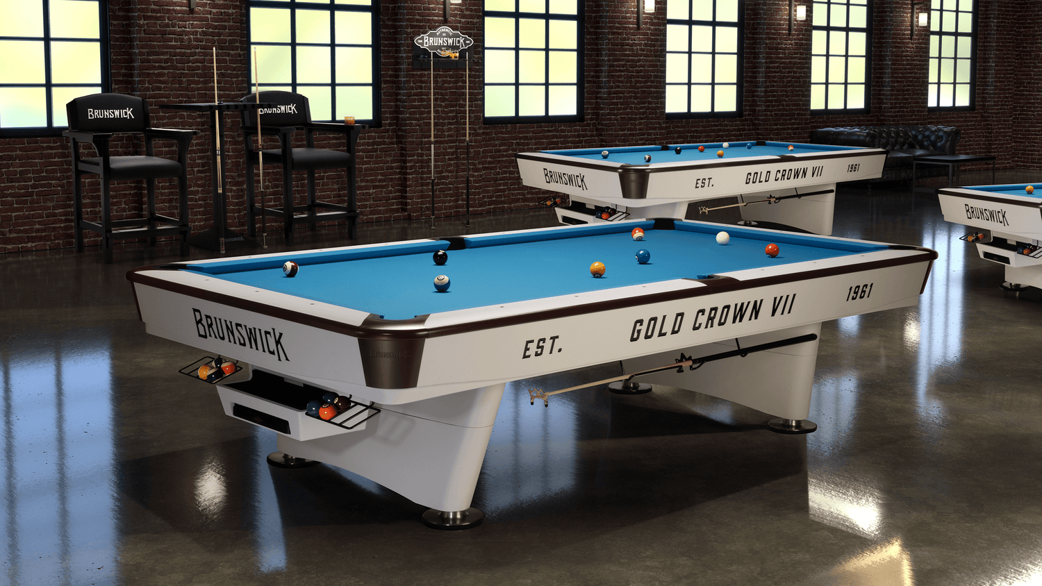 The Gold Crown VII continues Brunswick Billiards’ legacy of precision and craftsmanship that began with the legendary Gold Crown I in 1961. Combining classic Gold Crown styling with modern engineering, this table delivers professional-grade play, long-lasting durability, and thoughtful design features for easy setup and maintenance. From the highly engineered aluminum rails and player-preferred Artemis cushions to the Brunswick-certified 30mm slate and quiet ball return system, every detail is built for consistent, high-quality performance. Please note, the 8' Gold Crown VII does not include the Brunswick or Gold Crown VII epoxy lettering on the aprons as featured on the 9' version. Available in Tournament Black, Classic Brown, or Modern White, it’s a standout centerpiece for any home or commercial pool hall.